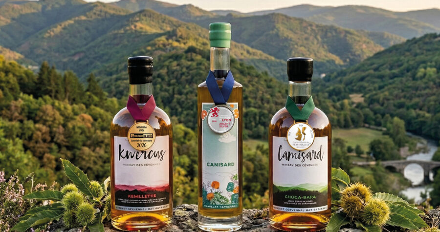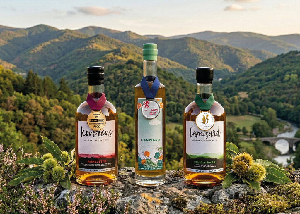 Avec le printemps vient la moisson annuelle de médailles… cette année, de l’or pour les whiskies — Kwercus Feuillette et Camisard Chuca-Raca (sa 6e) —, et de l’argent pour le pastis — Canisard (sa 2e) !